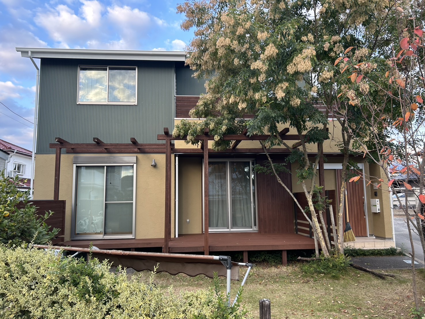 外壁の塗装以外にも、ウッドデッキや目隠しフェンス・パーゴラ等の木部も全て塗装させて頂き、綺麗に仕上がりました。ありがとうございました。