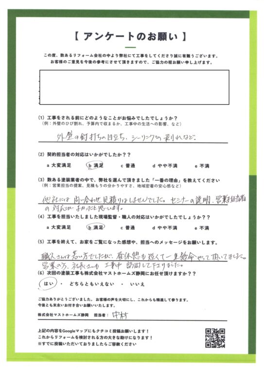 この度は弊社に施工のご依頼を頂き誠にありがとうございました。今後ともよろしくお願いいたします。